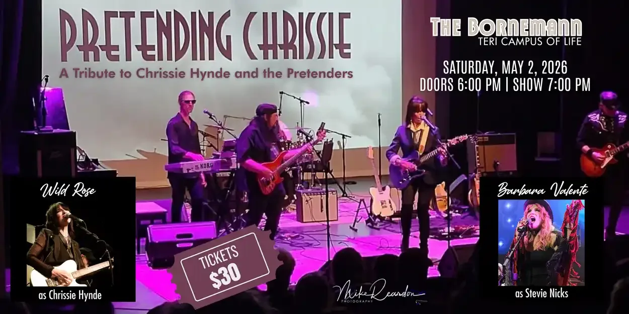Pretending Chrissie – Live at Bornemann Theatre at Teri Campus Saturday, May 2, 2026 7:00 PM 8:30 PM Bornemann Theatre at Teri Campus 555 Deer Springs Road San Marcos, CA, 92069 United States (map) Google Calendar ICS Concert Showwww.teri.live Get Tickets